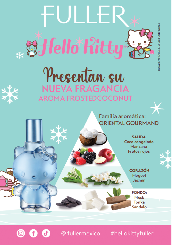 Descubre cómo Hello Kitty aroma Frosted Coconut by Fuller despierta tu imaginación para crear y creer que todo es posible. Los sueños son artífices del cambio e impulsan a lograr todo aquello que deseas, por ello Fuller y Hello Kitty® se unen para crear una fragancia fresca, única, femenina y adictiva.